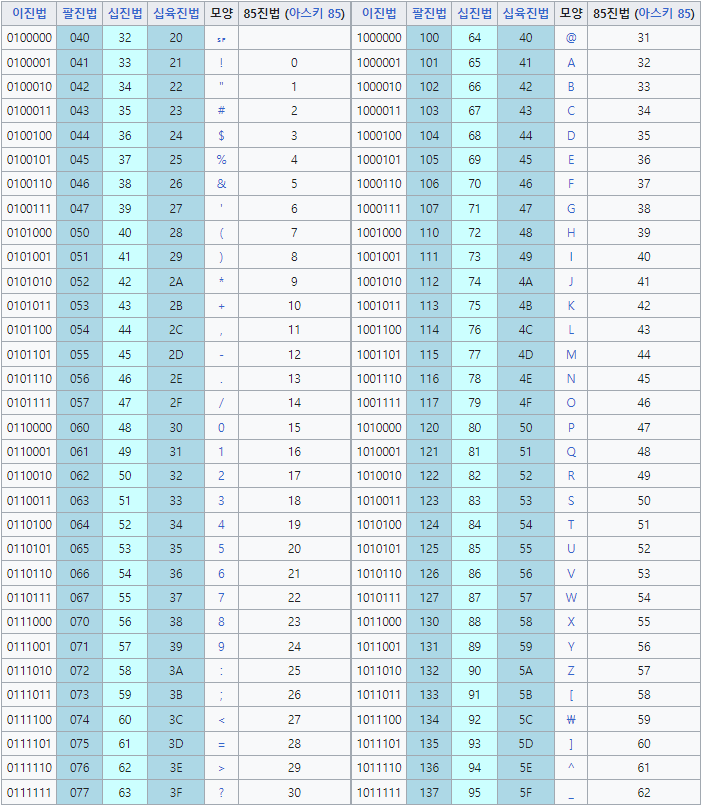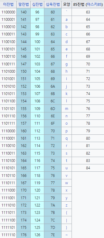 문자를 아스키코드(ascii)로 변환해주는 함수