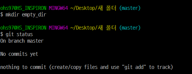 빈 디렉토리만을 추가했을 땐 추적되지 않는 걸 확인할 수 있다.