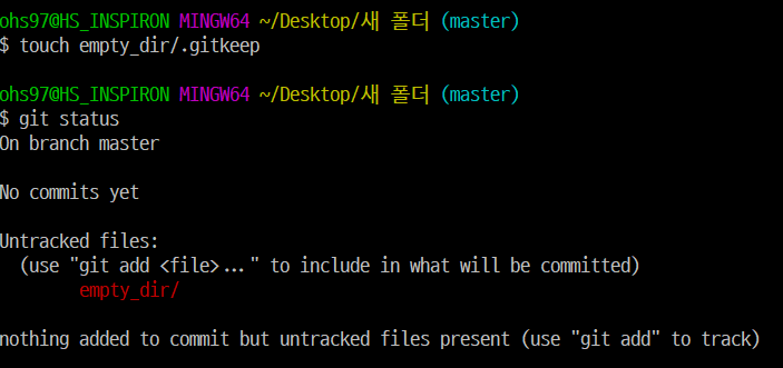 하지만 빈 디렉토리만을 repository에 올려야 할 때는 디렉토리 내 .gitkeep파일을 추가하는 방법으로 해결가능하다.