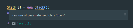 Stack 인스턴스 생성 시 오류메시지를 보면 parameterized class를 raw하게 사용 중이라고 하며,