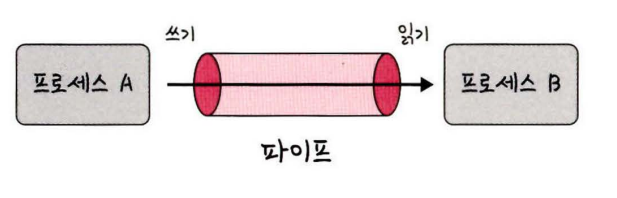 운영체제가 제공하는 버퍼를 사용하여 데이터를 전송하는 IPC기법이다. 버퍼의 크기가 제한되어 있기 때문에 일정 크기 이상의 데이터를 전송하기 위해선 여러 번 나누어 보내야 하는 단점이 있다.