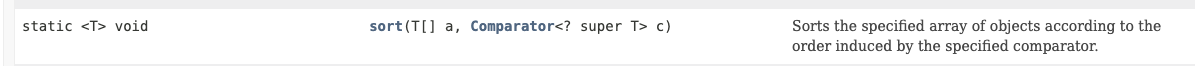 Arrays.sort()로 내림차순을 할 때는 첫번째 매개변수가 T[] a로 객체타입이다.