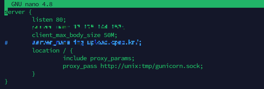 2. 본인이 원하는 만큼 cline_max_body_size의 값으로 설정한다.