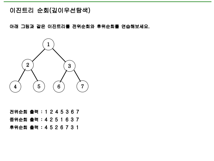 이진트리를 순회할 때 뿐만아니라 그래프를 순회할 때도 DFS탐색이라면 이 원칙을 따르기 때문에 필요에 따라 실행문의 위치를 자유자재로 사용할 수 있어야한다.