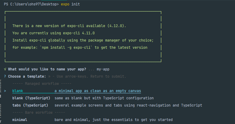 우리는 강의에서 배운대로 expo init후 생각없이 enter키를 연타하여 expo 프로젝트를 생성했다.