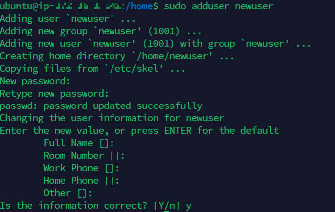 sudo adduser newuser