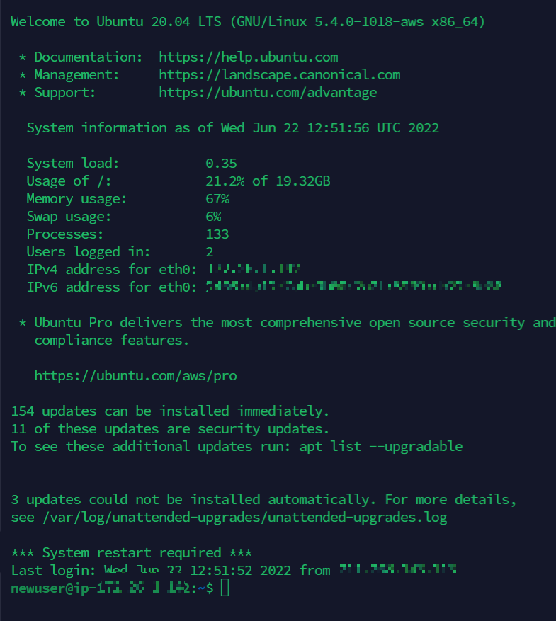 SSH의 username을 ubuntu에서 newuser로 바꿨다